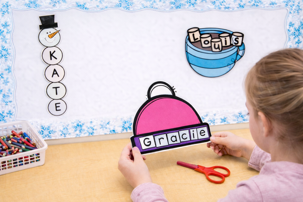 These hands-on activities not only support name recognition and letter formation but also strengthen cutting, coloring, and spatial awareness—all essential skills for future handwriting success. Plus, they double as eye-catching bulletin board displays that celebrate student work throughout the year!