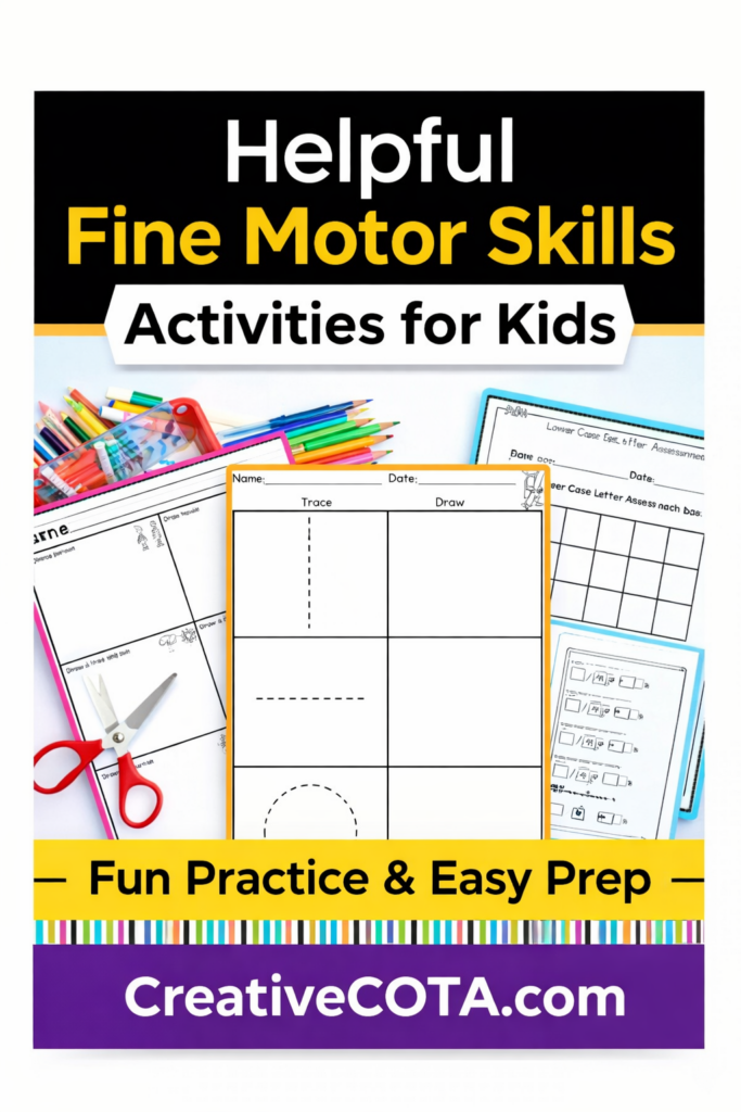 Free occupational therapy fine motor, visual perceptual and social emotional learning worksheets and activities