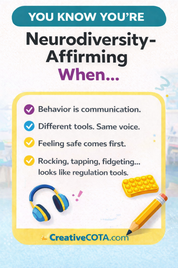 In today’s schools, more educators and therapists are working to create neurodiversity-affirming classrooms. This means we respect different nervous systems, learning styles, and ways of communicating. Instead of trying to make every child fit one mold, we adjust supports, tools, and environments so all students can succeed. But how do you know if you are neurodiversity affirming?